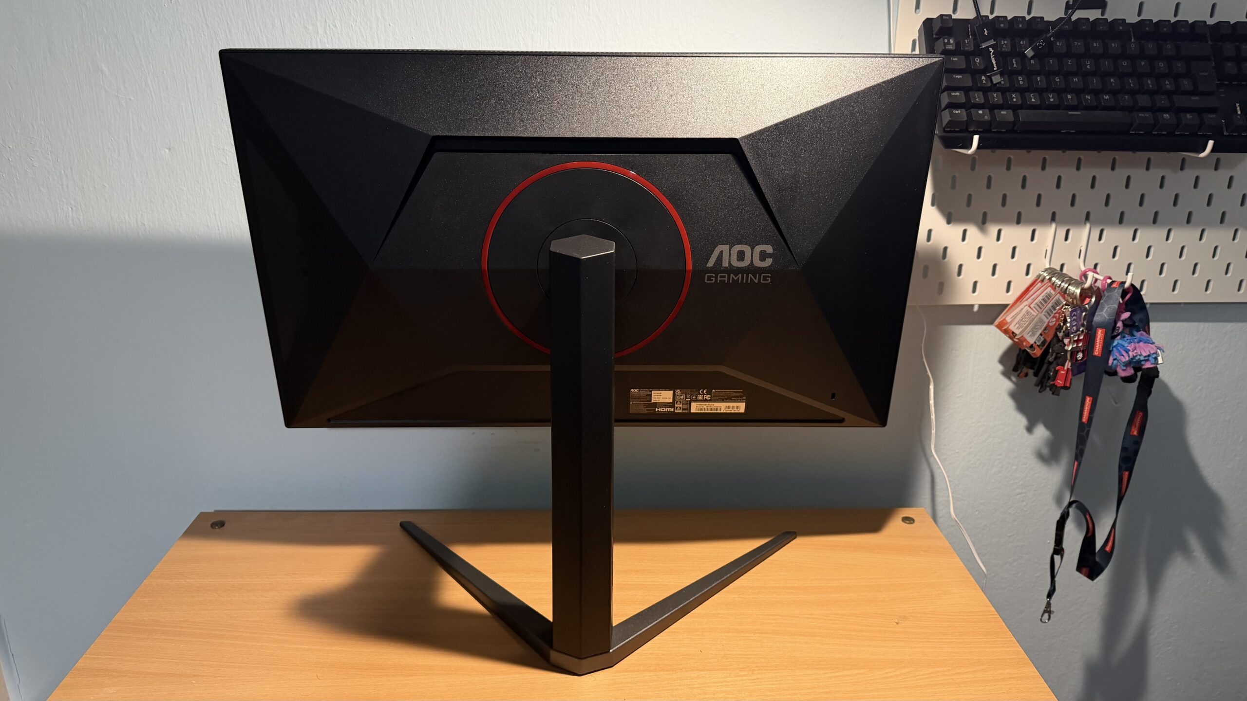 Az AOC ismételten maradt a jól bevált megoldásoknál. Ezúttal is a fekete és piros elemek találkoznak a hátoldalon, a szokásos piros kör és az AOC felirat most sem maradhat el. A monitortartón szintén felbukkan néhány piros elem, míg a gamer monitor elejét szinte csak a 4K felbontású kijelző foglalja el. A kávák vékonyak, sehol sincs egy extra jelzés vagy zavaró fény, így akár még irodai környezetbe is bátran beilleszthető a monitor.
